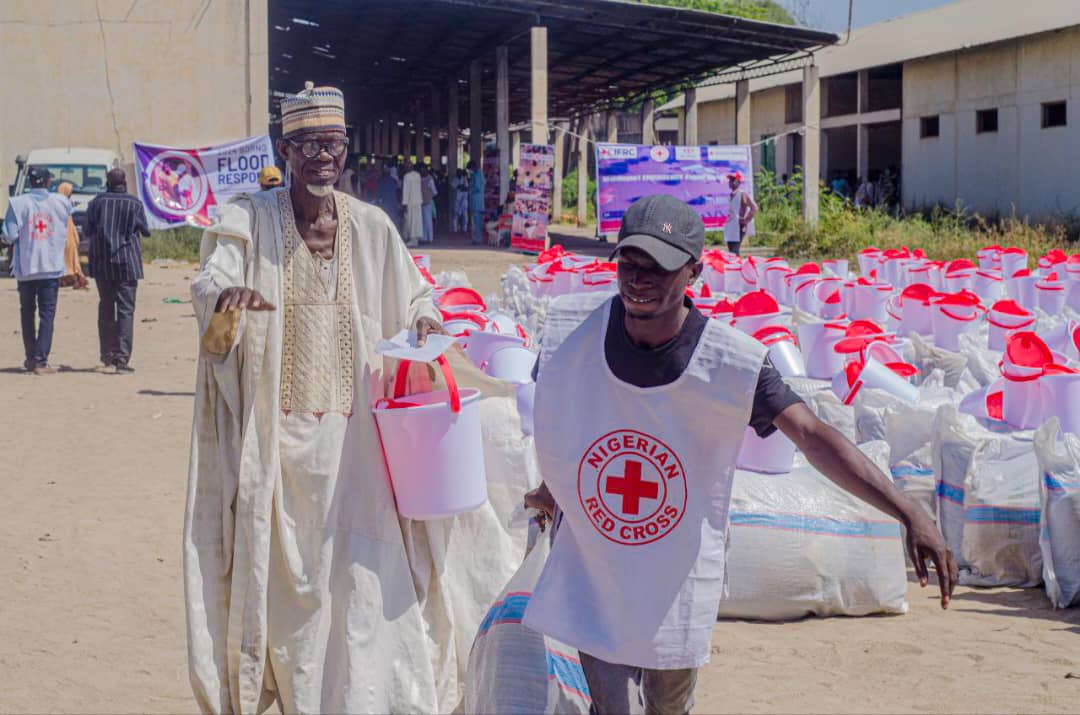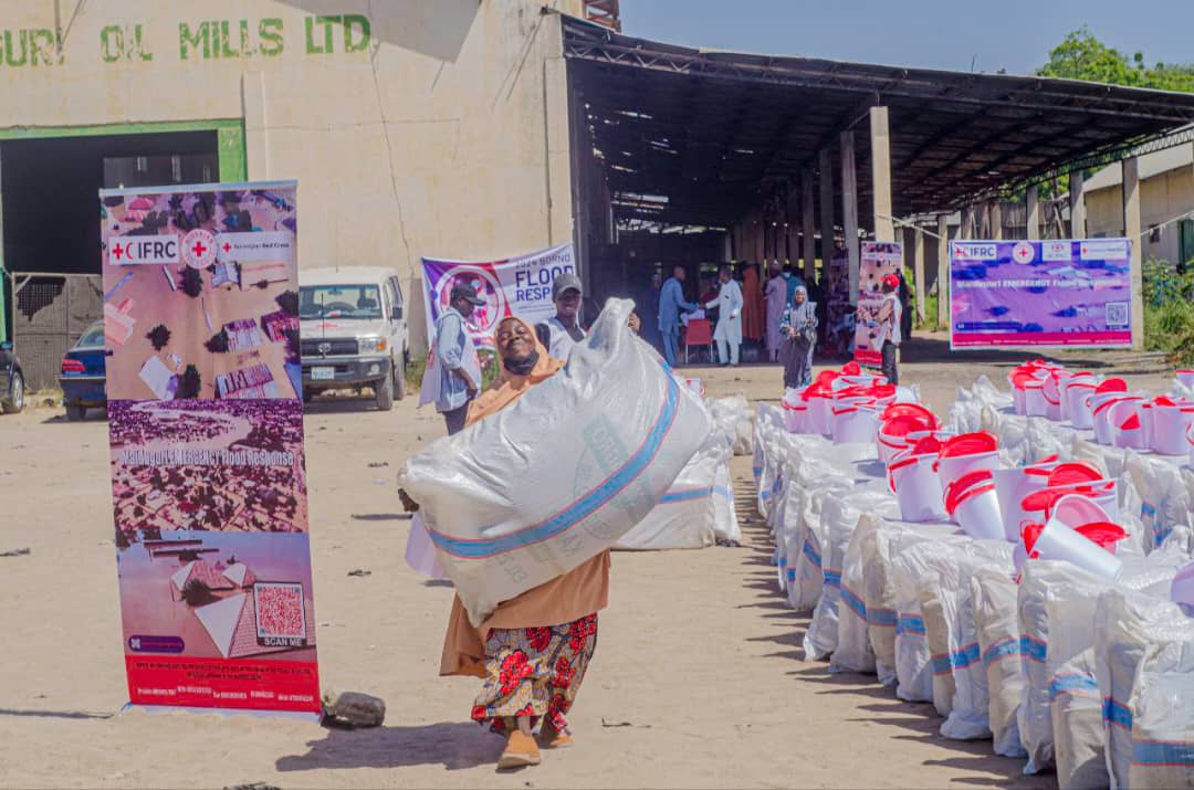 The Nigerian Red Cross Society (NRCS), with support from the International Committee of the Red Cross (ICRC), International Federation of Red Cross and Red Crescent Societies (IFRC), Norwegian Red Cross (NorCross), and Norwegian Refugee Council (NRC), has donated relief items valued at ₦185,000,000 to 1,850 victims of the recent Maiduguri flood disaster.In response to the devastating floods that ravaged Maiduguri, affecting over 60% of the city and claiming numerous lives, the NRCS swung into action to provide succor to those affected. The flood, which destroyed public and private properties worth billions of Naira, left many families in dire need of assistance.